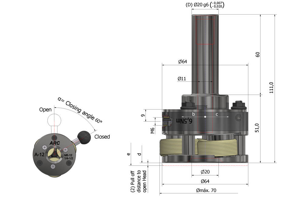c= Cabeza abre tipo A-12, cierra tipo A-12 G