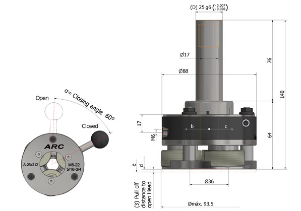 c= Cabeza abre tipo A-23×212, cierra tipo A-23×212 G